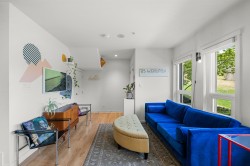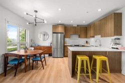 Modern 3 Level Townhouse in Downtown New Westminster with a Rooftop Patio! This east facing unit fronts onto Albert Crescent Park & features 3 Bed, 2 Bath, 1331sf, private Rooftop Patio with park and river views! Open concept Kitchen/living/dining on the main w/ laminate floors, beautiful kitchen & lots of natural light! Second floor has 2 spacious bedrooms & a full bathroom. Top floor has a large primary suite with 5 pc ensuite incl double sinks, separate tub & shower. Lots of windows & natural light on every level. Enjoy entertaining on the spacious Rooftop Patio overlooking the Fraser River & park. Great location, steps to Qayqayt Elementary School, Columbia SkyTrain station, Pier Park, River Market, Restaurants, Shopping & Queens Park! 1 Parking, EV ready (storage available for rent).
