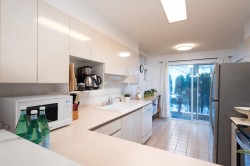 3BR+2.5 BATH, 2-story townhouse located in a quiet, family oriented neighborhood near Mosquito Creek. This well kept home features new laminate flooring and fresh paint throughout. The main floor offers a cozy flex/ eating area and a spacious living room with gas fireplace which is included in the maintenance fee. Upstairs features large master bedroom with walk-in closet and 2 full bathrooms, ideal for growing families. Enjoy outdoor living on your private patio. The basement includes a storage/ laundry room with direct access to your parking stall. Centrally located close to schools, shopping, parks, and transit. A fantastic opportunity in a sought-after community. Open House FEB 14th (Sat) & 15th (Sun), 2-4pm.