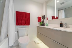 PANORAMIC VIEWS | LUXURY LIVING - Welcome to Hunter at Lynn Creek! This stunning 1 BDRM + DEN home offers breathtaking south-facing views, a spacious covered balcony, and air conditioning for year-round comfort. The sleek open-concept kitchen boasts quartz countertops, modern cabinetry, stainless steel appliances, and a gas stove-perfect for home chefs. The den is ideal for a home office, while wide plank laminate flooring adds a touch of elegance. Enjoy resort-style amenities: a gym, sauna/steam room, party lounge, BBQ area, kids' play zone, and more! Steps to Seylynn Park, Spirit Trail, rec center, shops, pharmacy, nail salon, and transit. 2 pets welcome!