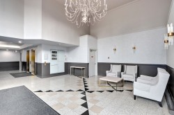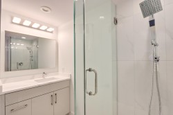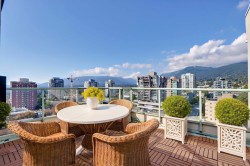 Thrilled to present this fully reno'd & refined penthouse, offering luxury & comfort in Central Lonsdale. Nearly 1,200 sqft of living space w/ an expansive house-like feel, generous rooms, & a chef's kitchen. Panoramic views from flr-to-ceiling windows of city, mtns, & ocean. Only 3 residences on this level offer exclusive privacy, high ceilings, new H/W flrs, light grey cabinetry, & quartz countertops. Miele appliances, refinished window trim, & custom cabinetry elevate this home. Spacious bdrms, hotel-style bthrms, & an expansive patio w/ city views. Steps from Whole Foods, restaurants, & services in vibrant Lonsdale.