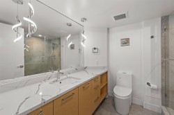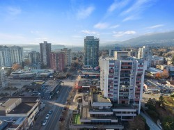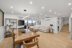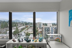 Welcome to Eastern House and this beautifully renovated penthouse. With over 1,600 sq. ft. on two levels, this home offers 3 bedrooms, 2.5 bathrooms, and a den. The main floor features an open layout with a stunning kitchen including quartz counters, a waterfall island, and custom cabinetry. Spacious living and dining areas plus a bright home office complete the space. Upstairs are three bedrooms, two bathrooms, laundry, and an enclosed balcony. Enjoy mountain views from every room. Renovations were completed in January 2024. The home comes with A/C, two parking stalls, and a storage locker. Located in the heart of Central Lonsdale—steps to shops, restaurants, transit, the library, and the rec centre. Walk score 86. Welcome home. Open House Sunday Feb 15, 2026 2-4 PM