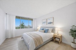Welcome to the sought-after Whytecliff building in Woodcroft Estates! This bright and private fully renovated (2023) 1-bedroom suite offers amazing panoramic views of water, lush greenery, and the city skyline including Lions Gate Bridge and the tranquil Capilano River. Thoughtfully updated with fresh paint, tiled entry, and newer appliances, this home is ideal for first-time buyers, investors, or downsizers. Enjoy resort-style amenities large indoor pool, sauna, hot tub, gym, library, entertainment and 24-hour gated security. This popular, clean, and well-maintained building is known for its park-like setting and welcoming neighbours. Unbeatable North Vancouver location just minutes to Park Royal, trails, transit, and downtown.month-to-month tenancy;24 hours’ notice required for showings.