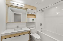 Welcome to the Versatile building where North Shore meets downtown convenience. Built by Intracorp and beautifully designed, this bright N/W corner unit offers floor to ceiling windows, in-floor radiant heating, quartz countertops, stainless steel appliances and looks like new. Offered as a 2 bedroom but technically 1 large bedroom and a huge bright den with windows and an alcove perfect for a small closet. 1 bathroom with a soaker tub. EV ready. Centrally located at Lonsdale and 3rd, you can walk to coffee shops, restaurants, Lonsdale Quay and Seabus within minutes. Some photos virtually staged. OPEN HOUSE: SUNDAY, DECEMBER 21st: 2-4 pm
