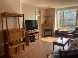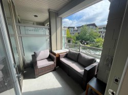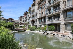 2 Bedrooms, 2 Bathrooms, 2 Parking & Air Conditioning! What are you waiting for? This value is incredible & shows very very well! This split bedroom plan is priced like a 1 bed & den but features 2 full bedrooms, 2 full bathrooms, 2 side by side parking and newer AC! The two covered balconies are so nice to have while you view the southside water views of Burrard Inlet & Seasons water features. Inside the home shows immaculate, 9 ft ceilings, faux wood beam, granite counter tops, new appliances, slate faced natural gas heat producing fireplace, hard surface flooring thru out. This southside home has a fabulous floorplan with loads of natural light! Raven Woods offers the best Master Planned " community" on the North Shore. Just minutes to Deep Cove, Cates Park, Parkgate Shopping!