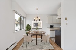 Bright 2-bedroom Winchester Estates Co-Op on the quiet southwest corner of the building, offering excellent value and light-filled living. The traditional, partially open layout features a generous living room with sliders to a wrap-around balcony and plenty of windows with partial city views. The dining area adjoins a galley kitchen with stainless steel appliances. The primary bedroom accommodates a king bed, while the second bedroom is versatile for guests or an office. Includes a 4-piece bath, original parquet floors, and fresh paint. Winchester Estates is an adult-oriented (18+) co-op with new roof (2025), and fees include heat, hot water, and basic cable. Steps to Lonsdale Quay, Shipyards, cafés, and SeaBus. Co-op requires 35% down and board approval.