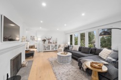 Tucked into a peaceful neighborhood, this beautifully reimagined 2-storey home offers an expansive, light-filled layout plus a top-to-bottom renovation done with care and timeless style. The main floor shines with an open office, generous bedrooms, wide-plank engineered hardwood, and a cozy wood-burning fireplace. A high-end kitchen features birch cabinetry, quality appliances, and a large breakfast bar—bright, open, and perfect for entertaining. Bathrooms were rebuilt from the studs with premium tile, fixtures, and heated floors. Major upgrades include new windows, updated plumbing/electrical, high-efficiency furnace and hot water on demand. Enjoy a fully fenced private backyard and an oversized double garage. Bonus: 2-bed suite earning $2,500/mo. Open Thurs 10am-12pm and Sat/Sun 1-3pm.