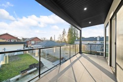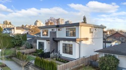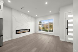 Located on the west side of the prime Central Lonsdale block, this beautifully built side-by-side duplex offers urban convenience & quiet comfort. The home features air-conditioning, 10' ceiling on the main floor, charming curb appeal, & bright south-facing fenced backyard. Enjoy MOUNTAIN VIEWS from the living room, gourmet chef’s kitchen with a large island & bar seating, dining area that flows to a sunny deck. Upstairs offers 3 spacious bedrooms, including a primary with walk-in closet, private ensuite & balcony. Laundry is upstairs for added convenience. The lower level includes a rec room & full bath, along with a LEGAL self-contained 1-bedroom SUITE as a mortgage helper. Comes with a single garage & 1 open parking space. School: Queen Mary Community Elem. & Carson Graham Secondary.
