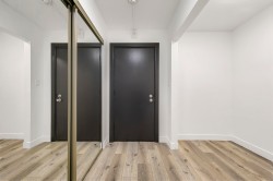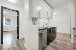 Prime LOLO! Located on the quiet side of the building is this spacious 2-bedroom, plus den, fully renovated suite in an unbeatable location. Featuring an excellent layout with a huge living room for your oversized couch and TV, new kitchen S/S appliances, granite counters, smooth ceilings, fresh paint, luxurious updated bathroom with all new fixtures, and a primary bedroom to easily accommodate a king-sized bed. Literal steps from transportation, restaurants, grocery stores, breweries, the Seabus, etc. Building updates include plumbing, hot water tanks, furnace, elevator, decks/balconies/railings. 1 secure parking & 1 storage locker. Turnkey, ready to move in or start up your rental investment property. Previously leased for $2750/mo. Note: 2nd bdrm has French doors but no window.