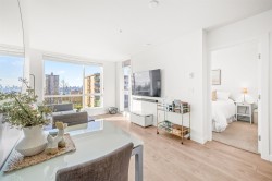 City, Ocean & Park VIEWS from every room in this perfectly laid out 2-bedroom home at CREST! You'll love the open-concept floor plan w/ high-quality finishes & a sunny south-facing patio, perfect for morning coffee or summer BBQs. Entertain w/ ease in your gourmet kitchen w/ a gas range, large island w/ waterfall-edge, pendant lighting, & built-in pantry. Thoughtfully designed for comfort & privacy, bedrooms are spacious & positioned on opposite sides of the home, complemented by spa-inspired bathrooms, in-floor radiant heating, & ample storage throughout. Experience the best of North Shore living w/ Whole Foods, Victoria Park & the Shipyards just steps away. Invest w/ confidence in this 4-year-young building w/ warranty & fantastic amenities.