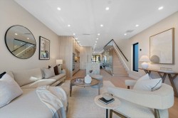 A SPECTACULAR BRAND-NEW detached home, walking distance to Lower Lonsdale. This 2,600 sq ft residence offers the perfect blend of quality, comfort & design. The main floor features open-concept living with a great room, kitchen, dining & family area, connected by Eclipse doors that open to a covered patio for seamless indoor-outdoor living. Thoughtful details include custom millwork, a hidden door panelling system, luxurious stone finishes, high-end appliances & bespoke cabinetry. Enjoy southern water & city skyline views from bright living spaces. Upstairs has three bedrooms, including a vaulted primary suite with walk-in closet, spa ensuite & private balcony. The lower level includes a self-contained legal suite. A/C-Heat Pump, 1-car garage, EV-ready, 2-5-10 warranty.