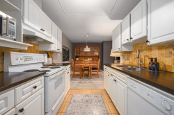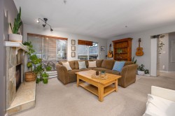 Bright 2-bedroom, 2-bath southwest-exposed corner unit with a 357 sq ft deck—one of the best in the complex. This spacious 1,225 sq ft home offers a large SW corner living area w/ a cozy gas fireplace, and easy flow to a formal dining area and functional kitchen. Step out to the private, sunny deck, ideal for relaxing or entertaining, with added storage. The home features two generous bedrooms, a primary with 4-piece ensuite, spacious entry w/ powder rm, pantry, & in-suite laundry. Add in two parking stalls and a storage locker. Centrally located in a walkable area steps to Parkgate Shopping Centre and Rec Centre, Garibaldi Park seconds away, and easy access to two full size golf courses, Mt Seymour, Cates Park, & Deep Cove for all your retail and rec needs!