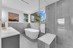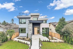 Nestled in the Queensbury neighborhood of North Vancouver, this exceptional new residence offers an unparalleled living experience. Presents a luxurious haven with captivating vistas of the ocean and downtown Vancouver. With an abundance of natural light and open-concept layout, this home exudes sophistication. Grand foyer leading seamlessly to the elegant living, dining, family rooms & gourmet kitchen. Upstairs, three generously sized ensuite bedrooms. Lower level offers a versatile media room with its own entrance, wet bar, additional bedrm. Two remarkable mortgage helpers - a legal two-bedroom suite and a two-bedrm LANEWAY house. Expansive roof patio to indulge in panoramic views that seamlessly blend indoor and outdoor living. Convenient surrounding public facilities. Open Sun 2-4pm