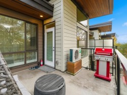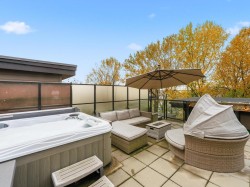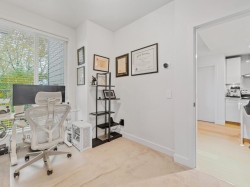 Penthouse living at The Shore by Adera. This bright 2 bed + den home offers 920 sq.ft. of interior space plus a rare 525 sq.ft. private rooftop patio with hot tub and peekaboo downtown views—ideal for entertaining or relaxing outdoors. The contemporary kitchen features a centre island, stainless steel appliances, and a large, customized pantry. The den works perfectly as a home office, while the second bedroom includes a sleek Murphy bed for added flexibility. Enjoy A/C, smart-home capability, and two parking stalls (rare for the building). Located steps to shops, dining, schools, and trails, with amenities including a gym, club room, recreation space, and storage locker. School catchments: Westview Elementary & Carson Graham Secondary.