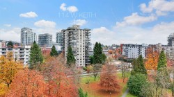 Welcome to Ashby House in the heart of Central Lonsdale! This updated 2-bedroom, 2-bathroom Northeast corner suite offers peek-a-boo ocean views and stunning glimpses of the North Shore mountains. The open-concept living and dining area flows onto a wraparound balcony—perfect for morning coffee or effortless entertaining. The spacious primary bedroom features a 2-piece ensuite, while the second bedroom is ideal as a guest room or home office. Building amenities include a recreation room and gym. Enjoy an unbeatable location: step across the street to the beautiful Victoria Park, and stroll to Central Lonsdale’s finest restaurants, shops, and amenities.