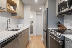 Spectacular southwest PANORAMIC VIEWS of the OCEAN, city skyline, Lions Gate Bridge & the Lions define this LUXURIOUSLY RENOVATED corner residence in a solid concrete building, in the heart of Lower Lonsdale. Thoughtfully updated, it features a new kitchen, custom cabinetry updated bathroom, luxury vinyl plank floors, new baseboards, smooth ceilings, quartz countertops, & new pot lighting. Bright, generously proportioned living & dining areas easily accommodate full-size furnishings, while principal rooms showcase the stunning views. The well-managed building offers amenities including a gym, lounge, tennis court, landscaped courtyard & secure bike storage. Just steps to Lonsdale Quay, Shipyards, SeaBus, dining, breweries & all conveniences. Elevated urban living in the heart of Lolo.