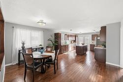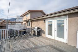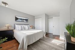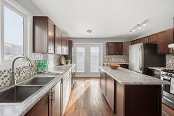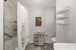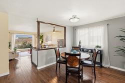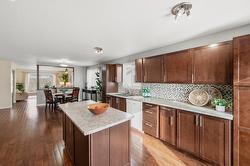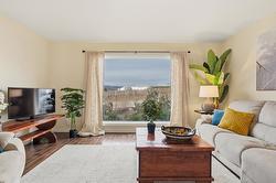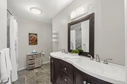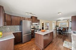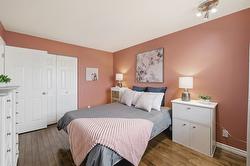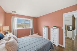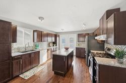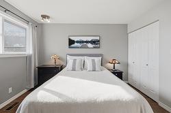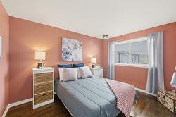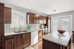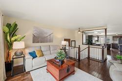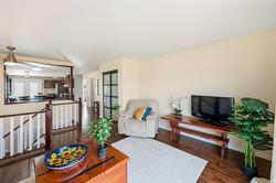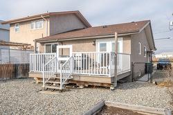 This updated, 2+1 bedroom, half duplex is ideal for first time buyers, a growing family or retirees. Alongside the generous driveway, the beautiful, desert-scaped front yard features massive, low maintenance cacti. Just a few steps up from the split level side entry, you'll find a bright, updated, open concept living room and spacious kitchen-dining combination. Oversized windows in the living and dining rooms, and a double French door walkout from the kitchen flood this space with natural light. Ideal for entertaining, the main level features continuous, chocolate brown hardwood flooring, abundant matching cabinetry including a kitchen island, and a gas range. Delivering easy, one-level living, the main floor is completed by two large bedrooms with generous closets, flanking a 5 piece bath with elegant double vanity and deep soaker tub. Downstairs you'll find a generous home office/den that could also serve as a guest bedroom, and a massive finished recreation room, both with practical vinyl flooring. This level also features a 4 piece bathroom with double vanity and glass enclosed corner shower, along with spacious, finished laundry, and unfinished utility and storage rooms. At the rear of this home the kitchen walks out to the generous, rear deck with gas BBQ and gate ideal for containing toddlers and pets. The rear yard is fully fenced with low maintenance gravel ground cover and features a raised gardening bed. Dimensions are approximate. Buyer to confirm if important.