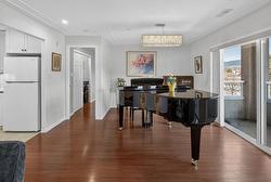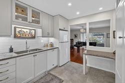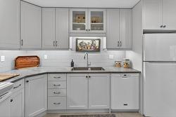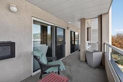Immaculate and inviting, this fifth-floor 2-bedroom condo is a true gem. Updated with newer paint, kitchen cabinetry, countertops, custom cabinetry, window coverings and flooring, it exudes a modern and pristine atmosphere that is sure to impress. Step inside and be greeted by the bright daylight infused living space with sunrise views that can be admired from the comfort of your own fireside living room. The master bedroom incudes deck access, a spacious walk-through closet and a contemporary master ensuite. A second bedroom at the opposite end adds comfort and guest privacy. Complete with custom built in cabinetry in the second bedroom - turning this space into a media room or executive office - convenience is at your fingertips with a prime location next to a variety of shopping options, making errands a breeze. This meticulously maintained condo offers the perfect combination of style, comfort, and practicality all with secure parking & access. Don't miss the opportunity to own this beautifully updated condo in a sought-after location. Schedule a showing today with your favourite agent and make it yours!