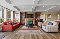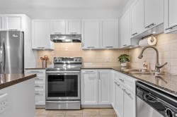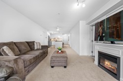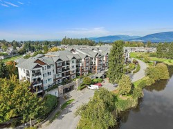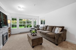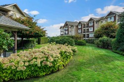 The Fairways - A ground level 2-Bed + DEN with Resort-Style Living. 2 beds, 2 baths, and a LARGE DEN perfect for a home office. Kitchen boasts granite countertops, stainless steel appliances, ample cabinetry, and a spacious pantry. Relax on your patio overlooking a quiet courtyard with mountain and golf course views. Tasteful upgrades include all new carpet & paint. RARE TWO SIDE-BY-SIDE parking stalls across from the elevator and a LARGE storage locker. Resort-style amenities: gym, sauna, billiards, kids’ playroom, guest suites, and lush gardens. Pet-friendly, proactive strata with a healthy contingency fund. Steps to Meadow Gardens Golf Course, shops, dining, transit, and quick access to Golden Ears & Pitt River Bridges.