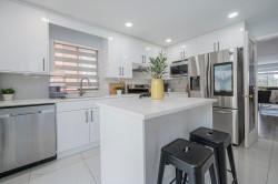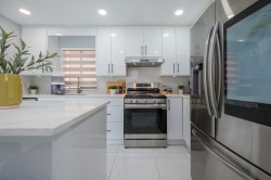 Newly remodeled basement entry home in the heart of Pitt Meadows! Over 2,200 sq ft with 5 bedrooms plus den (possible 6th) and 3 full baths. The main level offers bright, open living, a brand-new chef’s kitchen with quartz counters, stainless appliances & custom cabinetry, plus new flooring, paint, lights and blinds. The primary suite features a walk-in closet and renovated ensuite. Downstairs has its own entry w/ roughed in kitchen, large living room, 2 beds, full bath & den for suite potential! Furnace/AC 2024. Enjoy summer evenings on the huge deck overlooking your fenced yard. Walk to schools, shopping & the Athletic Park. Nearby dike trails along the Fraser River offer scenic walks with mountain views, and the West Coast Express is nearby for an easy commute.