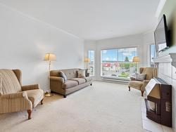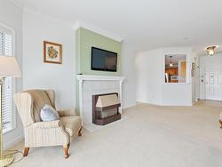 Welcome home. This awesome 2 bedroom + 2 bathroom unit features a large dining room, large kitchen with lots of storage, crown mouldings. Full sized laundry room with washer & dryer and storage. Gas fireplace, storage locker downstairs. 1 Larger breed dog allowed. 1 pets max. Gym located in building w/ new equipment. Walking distance to food, shopping, cinema and transit. 5 minutes to the Pitt River Bridge. Parking Stall #306. Storage Locker #40.