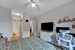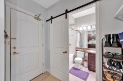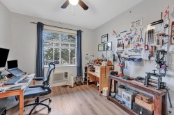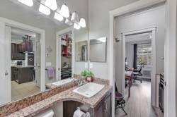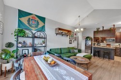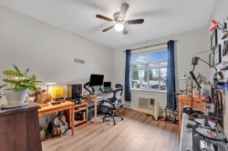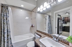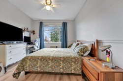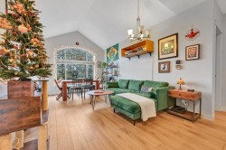 BEST LOCATION IN PITT -TOP FLOOR • CEDAR DOWNS • STUNNING MOUNTAIN VIEWS Beautiful penthouse-style home with vaulted ceilings and loads of natural light & all new laminate flooring, Bedrooms are on opposite sides, each with its own full bath. Dedicated work-from-home station with built-in desk and cabinet. Features include granite counters, soft-close wood cabinets, S/S appliances, heated bathroom floors, fog-free mirrors and 2 walk-thru closets. Includes 2 parking spots + storage locker on the same floor. Building offers gym, amenities room & bike storage. Walk to WCE, Meadowvale shops, parks, pubs & restaurants.