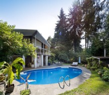 WATCH OUR LISTING FILM FOR THE ESSENCE OF THIS CENTRAL UNIQUE & HIDDEN RESORT STYLE PROPERTY. Rumour has it as possibly the largest lot in Oxford Heights at 36,075 SF. That's 0.83 of an acre! My goodness!! Built in 1963, this 2,433 SF post & beam Port Coquitlam home has been renovated over the years. Open great room has sloped vaulted ceilings & picture windows. Kitchen cabinetry is a custom center cut white oak grain. Iconic mid-century modern style kidney shaped swimming pool complete with diving board has a brand new pool liner & water pump. The roomy primary bedroom is located on the main & has vaulted ceilings. Lower level which is a licensed Airbnb has separate entrances with a rec room & kitchenette as well as 2 bedrooms.
