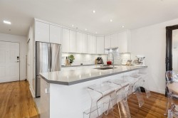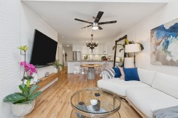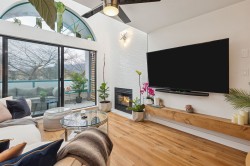 Beautifully updated TOP LEVEL home at Portica West! Abundance of light from the 20ft ceilings, Kitchen with custom high-gloss cabinetry, quartz countertops, porcelain tile flooring and high-end appliances. A 12-ft kitchen peninsula offers ideal bar seating. The bathroom features upgraded tile, rain shower, body spray, deep soaking tub, modern vanity, new toilet and faucets. Fresh paint, updated lighting, new baseboards, new hardwood floors, and skylights complete the home. Over $120K of upgrades. Amenities include a lounge, rooftop patio, exercise room and sauna. Close to transit, schools, shopping and restaurants! Check out virtual tour https://pixies.et/YLSeAje8