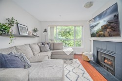 Discover this inviting 3rd-floor home situated on the quiet side of the building, offering peace and privacy. This bright and spacious 2-bedroom, 2-bathroom residence features over 1,043 square feet of well-designed living space. The cozy gas fireplace adds warmth and charm and is conveniently included in the strata fee. The generous primary bedroom boasts a large walk-in closet for added storage. Bonus: enjoy the convenience of two secure underground parking stalls located close to the elevator. Residents also have access to a well-equipped clubhouse with a large party room, updated gym equipment, and a hobby room. Ideally located with quick access to Highway 1, schools, shopping, and public transit—perfect for daily living and commuting.