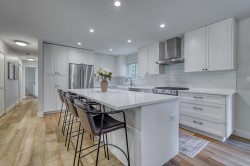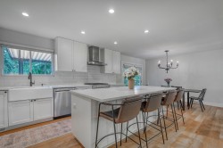 Extensively renovated 4-bed, 3-bath home in family-friendly Port Coquitlam. The stunning kitchen boasts a farmhouse sink, quartz counters with oversized island, KitchenAid appliances, gas stove, and Electrolux laundry. Upgrades include new cabinets, pot lights, under-cabinet lighting, new doors, blinds, and updated electrical. Outdoors features new gutters, vinyl deck with brand-new covered structure (warranty), fresh railings and stairs, plus gas hookups for seamless entertaining. Close to schools, parks, trails, shops, and transit—move-in ready with every detail done.
