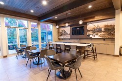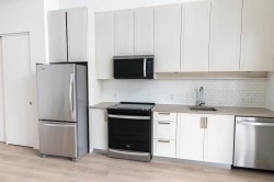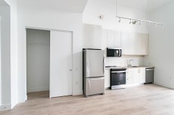 This rarely available large studio top-floor condo, fully renovated with entirely brand-new features including appliances, tall cabinets, quartz countertop, flooring, laundry, 2 in-suit storage spaces, galley kitchen, spa-like bathroom, heated floor, security system, fresh paint, a soaring 15-foot cathedral ceiling & oversized windows allowing plenty of natural light inside. The parking stall & the unit are both right next to the elevator. Exclusive access to the Fremont River Club & amenities including a pool, Gym, basketball court, meeting room & much more. Near Fremont Village shopping, schools, transit & the scenic Pitt River & Traboulay Trail, this large studio can easily be converted to a junior one-bedroom unit, ideal for a young couple!