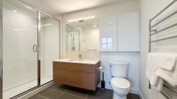 Welcome to this stunning 2-bedroom + den sub-penthouse in the heart of Port Coquitlam! This 1,059 sq. ft. corner home boasts an expansive 87 sq. ft. patio with sweeping mountain views. Thoughtfully upgraded by its loving owner, every detail has been considered — custom California Closets in each bedroom, a stylishly upgraded entry door, spice-organized kitchen, heated towel racks, built-in Sonos surround sound system, and air conditioning for year-round comfort. The home has been meticulously maintained and feels like new. Building is only 2 years young and includes rare 2 automated parking stalls. A true gem in Central PoCo, just steps to shops, breweries, the community centre, schools, parks, and transit.