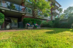 Welcome to Suter Brook! This spacious ground-floor 2 bedroom + den, 2 bath home offers a rare 1100+ sqft private yard w/ patio —incredible extension of your living space. Enjoy an open layout w/ 9ft ceilings, well proportioned rooms, fresh paint, granite countertops, stainless steel appliances, in-suite laundry, and a den w/ window & door —ideal for home office or nursery. Primary bed features walk-in closet & full ensuite. Amenities: fitness room, party/play room, & guest suite. 1 Park + 1 storage. Pet-friendly: large dog or two cats. Steps to Rocky Point Park, SkyTrain, West Coast Express, breweries, shops, restaurants, and recreation. A standout layout, enviable yard, and a truly walkable lifestyle. Don’t miss this one! **OPEN HOUSE: SATURDAY JAN 24TH 2:00-4:00PM**