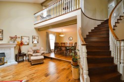 Welcome home to this popular Heritage Mountain address. This well maintained Bright delightful home got a lot good quality work done- luxurious walnut Engineer hardwood flooring, lifetime steel roof, newer renovated bathrooms and new fence. A welcoming foyer leads you to the spacious formal dining and living rooms. The large oak kitchen & eating area look out at the fully fenced yard-a safe place for the kids to play. The adjacent family room opens onto the peaceful deck. Also included on the main floor-den, laundry room & powder room. Upstairs are 3 bedrooms, loft area, & 2 bathrooms. Downstairs includes a fully finished walk-out basement with summer kitchen. Elementary school & park at the end of the child-safe cul-de-sac. Heritage wood Secondary school and Middle school very close by.