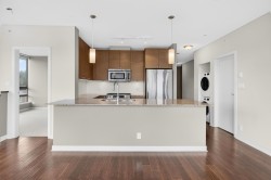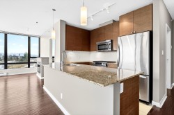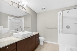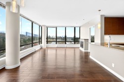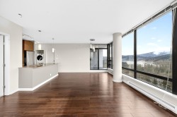 Welcome to Aria II! This stunning upper-floor, corner-unit condo offers 2 bedrooms and 2 bathrooms with breathtaking, panoramic mountain and ocean views framed by dramatic floor-to-ceiling windows. The bright, open-concept layout is perfect for entertaining, with natural light pouring in from every angle; imagine washing dishes while gazing at snow-capped peaks. The spacious primary bedroom features a walk-in closet and a luxurious 4-piece ensuite complete with a separate soaker tub and glass-enclosed shower. Enjoy resort-style living with exceptional amenities including an indoor pool, fully equipped fitness centre, movie theatre, squash court, and expansive amenity room. Just steps to shopping, transit, SkyTrain and the Marina at Rocky Point Park. This is a lifestyle truly worth living!