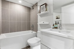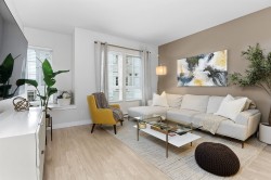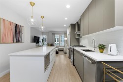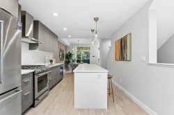 Urban living in this modern 3 bed, 2 bath townhome by EDGESTONE! 6 years young, w/ balance of 10 year NHW. Updated features & hardware throughout. Bright open-plan kitchen with over-height ceilings, large quartz island & countertops, gas range, & sleek cabinetry. Upstairs offers 3 spacious bedrooms, primary with radiant in-floor heating & under-vanity lighting. Parking isn't an issue, with street side parking & large tandem GARAGE- providing bonus of excellent storage for all the toys, think bikes, kayaks & more, & new durable epoxy flooring recently installed. Well run & pro-active strata w/ low fees, & family friendly community. Commuting options ideal here with Barnet Hy 1 blk away, close to WCE, Rocky Point Park, schools, shopping & legendary Brewers Row! Open House SAT & SUN 1-3pm