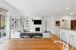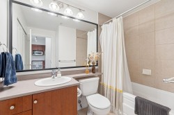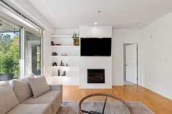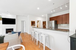 Welcome home to your spacious and bright 2 Bed/2 Bath SW corner home in Suter Brook in the heart of Port Moody. Walk in the front door and enjoy 9 ft ceilings and the perfect layout offering 1170 SF of open concept living including a chef’s kitchen with SS appliances, granite counters and bar seating. You’ll love the full size windows, two covered patios and a beautifully updated fireplace w/ contemporary finishes + built in shelving. The large bedrooms have been freshened up with new carpet and are separated for ultimate privacy. Great building amenities including gym, two level amenity room and two guest suites located on the same floor making it easy and comfortable for hosting family + friends. Enjoy this coveted location – walking distance to trails, shops, brewery lane + transit.