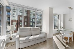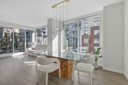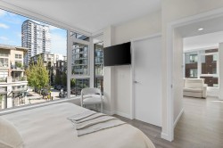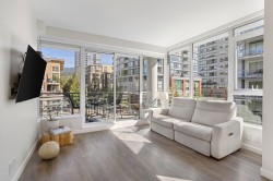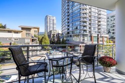 LIKE NEW | 2 BED + LARGE DEN | 2 PARKING | LARGE STORAGE! Perfect for downsizers or anyone seeking resort luxury! This concrete home lets you skip the elevator-just head downstairs to Suter Brook Village for groceries, dining & more or a short walk to Rocky Point, SkyTrain & Newport Village. Inside, enjoy high-end finishings: A/C, an entertainer’s dream kitchen & spa-inspired bathrooms. With 2 spacious bedrooms + a den that functions as a 3rd bdrm, this layout is versatile for all stages in one of Port Moody's most sought-after buildings! 'THE GRANDE' offers resort-style amenities including concierge, pool, hot tub, sauna/steam room, guest suites, gyms, golf simulator, lounges, meeting rms & more. Comes with 2 parking (1 EV) & a HUGE locker just steps from the elevator