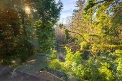 Experience total privacy in this beautifully renovated North Shore home, secluded on a creekside 10,832 sq. ft. lot. This 5-bedroom, 3-bathroom residence spans 3,145 sq. ft. and features a walk-out basement with a separate suite - currently operating as a legal Airbnb in Port Moody for immediate revenue potential. The property captures seasonal ocean views and sits in a prime location just one block from the Shoreline Trail and minutes from the Skytrain Station. Complete with a workshop, double garage, and generous outdoor living space, this home offers a rare combination of lifestyle, income, and accessibility.