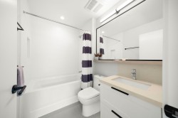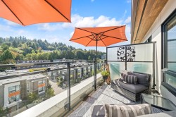 xperience the PENTHOUSE COLLECTION at George by Marcon. This rare south-facing 2-bed+den, 3-bath residence offers over 1,100 sq. ft. of sophisticated living space, perfect for those seeking a house-sized feel. The open-concept interior is flooded with natural light, overlooking a serene greenbelt and lush hillsides. Both bedrooms feature updated plush carpets and private ensuites with heated floors. Enjoy a versatile 100 sq. ft. den, guest powder room, and the comfort of A/C. This home is complete with window screens for days you want to enjoy the fresh air, 2 parking stalls and a large private storage room. Located just minutes from Moody Centre Station, Rocky Point Park, and the best of Port Moody’s vibrant lifestyle. A perfect blend of luxury and location! OpenHouse SAT&SUN 2:30-4:30PM