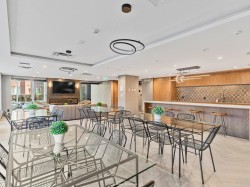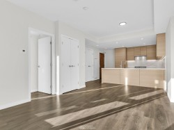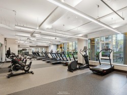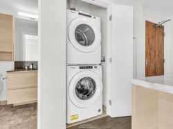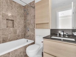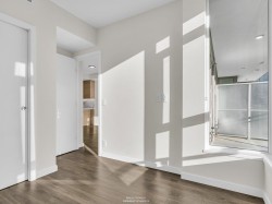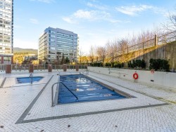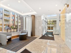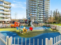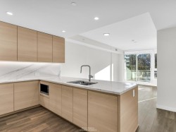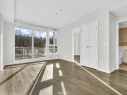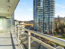 ABOVE IT ALL! This stunning park-side suite at The Grande at Suter Brook Village is sure to impress. Bright and south-facing, the home offers expansive open views and abundance of natural light. This beautifully designed 1 bed, 1 bath residence features 9' ceilings, a chef-inspired kitchen with a large marble breakfast bar, 5-burner gas cooktop, integrated refrigerator and laminate flooring throughout. Step outside to a generous 121 sq ft balcony spanning the full width of the suite - perfect for relaxing or entertaining. Heat pump provides efficient heating and air conditioning year-round. The home includes 1 parking stall and storage locker. Enjoy resort-style amenities: outdoor pool & hot tub, fitness centre, sauna & steam rooms, BBQ area and guest suite.