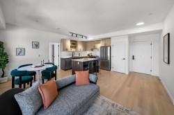 FULL CORNER PENTHOUSE 608 OCCUPIES THE HIGHEST VANTAGE POINT, COMMANDING A STRIKING PANORAMIC OUTLOOK ABOVE ALL SURROUNDINGS. EXPERIENCE SOPHISTICATED MODERN LIVING AT "THE ANCHOR." Thoughtfully conceived by industry leaders, developed by the highly regarded BOLD PROPERTIES, with interiors by Creative Designworks & architecture by Gateway Architecture. Establishing a new benchmark for elevated urban residences. Exceptionally functional layout with kitchen island, expansive 9ft ceilings, generous proportions, and unobstructed mountain & MOODY INLET WATER VIEWS. Nearly 550 SF full wrap-around patio for entertaining, delivering a seamless indoor-outdoor living experience. Finished with premium materials throughout & enhanced with modern comforts. 2 Parking & Locker.