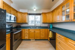 Welcome to this centrally located four-bedroom, three-bathroom home offering comfort and functionality throughout. The kitchen features maple cabinetry, hardwood flooring, and an open dining area — ideal for everyday living and entertaining. Enjoy outdoor living with a spacious 12' x 13' covered deck plus a wrap-around deck. Additional highlights include a 12' x 10' shed for gardening or storage, central vacuum, a wine cellar, and a cold room. A well-appointed home in a convenient location. All measurements are approximate, buyer to verify if deemed important.