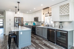 Luxurious and in a quiet neighborhood near the hospital. This home has a primary suite to-die-for, as well as two more bedrooms and another bathroom on the top floor. The main floor has a beautiful light filled space with an open-concept kitchen/living/dining room, an office with double doors, a laundry room and powder room. Downstairs you will find a massive games/rec room along with full bath, bar and bedroom. With extra wide stair cases, quartz counters and beautiful flooring this home feels elevated in quality. Copper Falls build, with warranty until 2029. This home is 1000 sq ft larger than its closest competitor in newer construction in the same price range.