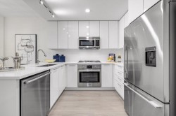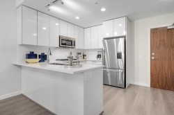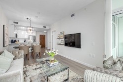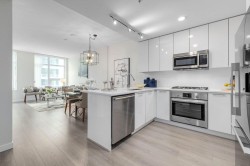 Beautiful new 1 bedroom diplay unit at Torino North. Airy and spacious throughout with extra large chef's kitchen & full-size appliances, high ceilings, wide-plank laminate flooring, and heat pump cooling/heating. Convenient location with services, groceries, restaurant & the Capstan Canada Line Station all a couple minutes walk away. Ready to move in.