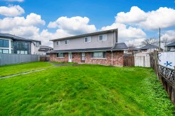 Fantastic opportunity in the desirable Richmond Ironwood neighbourhood. This freehold half-duplex home (not a townhouse) offers no strata fees and sits on a rare over 5,600 sq.ft. pie-shaped lot, priced below BC Assessment. South-facing and well maintained: 2023 – Fresh interior paint throughout, including ceilings. 2024 – Updated washer, range, double-glazed windows and patio door. 2025 – New kitchen cabinets, dryer, carport roofing, stone countertops, ceramic tile kitchen floor, wood flooring throughout, and fenced yard. Includes a secured side storage room. Two separate lane accesses add flexibility and strong future redevelopment appeal. 11491 Seabrook Cres (the other side of the duplex) is also listed for sale. Lot size alone makes this a rare find in Richmond.