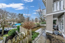 Discover this beautiful 2-bedroom, 2-bath home in the sought-after Zenia Gardens! Though on the ground level, the unit sits safely two storeys above street level for added privacy and peace of mind. Inside, enjoy a stylish and functional layout with granite countertops, gas stove, stainless steel appliances, in-suite laundry, and tasteful modern upgrades including newer cabinet doors, laminate flooring, and zebra blinds. Step outside to an expansive, fenced-in patio perfect for relaxing or entertaining. One parking stall right across from the elevator and one storage locker. Proactive strata management, New ROOF just done in 2024. Steps from shopping, the Canada Line/bus routes, walking distance to General Currie Elementary and Palmer Secondary.