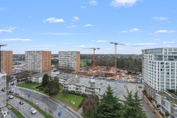 Situated on the 13th floor - subpenthouse - of RC Tower A. This air-conditioned corner 2 Bedroom, 2 Bathroom home features expansive windows that showcase a stunning, panoramic view of the North Shore Mountains and the entire Richmond skyline. The interior is bright and sophisticated, highlighted by a functional open-concept layout that maximizes both light and privacy. Perfectly situated just steps from CF Richmond Centre and the Brighouse SkyTrain station, daily conveniences, dining, and transit are all within effortless reach. Complete with a rare EV-ready parking stall, this home blends premium modern design with a premier location for a truly elevated urban lifestyle.