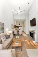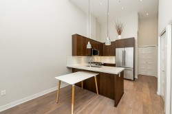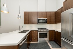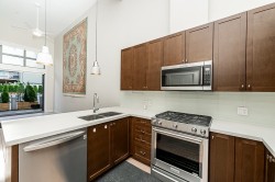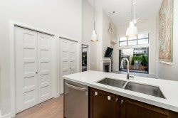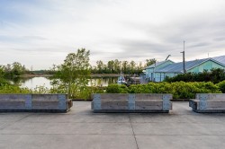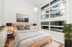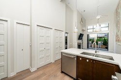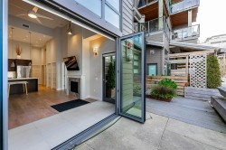 Welcome to "The Pier" in Steveston’s rarely available London Landing! This east-facing ground-level 1 bed + den unit features soaring 15’ ceilings and floor-to-ceiling windows that flood the space with natural light. With just under 750 sq ft, it offers 2 full bathrooms, a beautiful kitchen, and a versatile den that can be used as a 2nd bedroom or office. Enjoy seamless indoor-outdoor living with large bi-fold doors leading to your spacious garden patio, complete with a gas hookup. Steps from scenic dyke trails and a brand new waterfront park. Includes 1 parking and 1 locker. Rentals and pets allowed. A truly special home—don’t miss out!