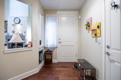 Rarely available 1,878 sqft corner unit at Springbrook Estates by Cressey. Duplex-style townhouse with 3 bedrooms, 2.5 bathrooms, and impressive 18’ ceiling in the living room offering bright, open living space. Extra windows provide abundant natural light and added privacy. Well maintained with engineered hardwood flooring on the main level, stainless steel appliances, and functional layout. Spacious primary bedroom with walk-in closet and ensuite. Private backyard and patio. Quiet, family-friendly location within walking distance to Garden City Park, schools, shopping, and transit. Well-managed complex. Move-in ready. Motivated seller. Offers welcome.