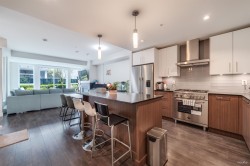 Harbour Walk Located in the sought after London Landing neighbourhood. Over 1,200 sq. townhouse with a private fenced yard. The unit has a bright and open layout, 9 foot ceilings, and high quality appliances and hardware. The sleek interior design features wide plank wood flooring, quartz countertops, and porcelain tiles. The building has top notch fitness facility, private event room, and outdoor fire pit. Only minutes away from, transit, restaurants, shopping, Steveston Village, and waterfront cafes. School catchments are Homma Elementary and McMath Secondary. This unit includes 2 parking & 1 storage locker. The strata fee include city utilities.